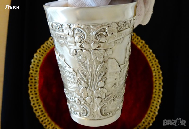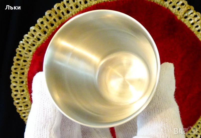 качествена,масивна,като направена от сребро.Височина 8.5 см.,диаметър 6