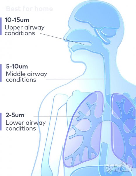 【Високоефективна пулверизация】 Инхалаторът пулверизира активните съставки чрез използване на усъвършенствана технология за микрокомпресия, средна скорост на пулверизиране≥0,15 ml min, размер на частиците: 1-5 μm