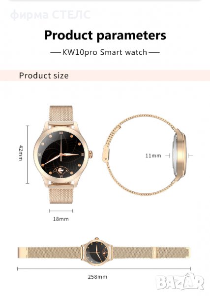 STELS KW10 PRO Smartwatch 1,09-инчов TFT дисплей с тъчскрийн, NRF52832 процесор, 64Kb RAM, 512Kb ROM, 180mAh полимерна батерия