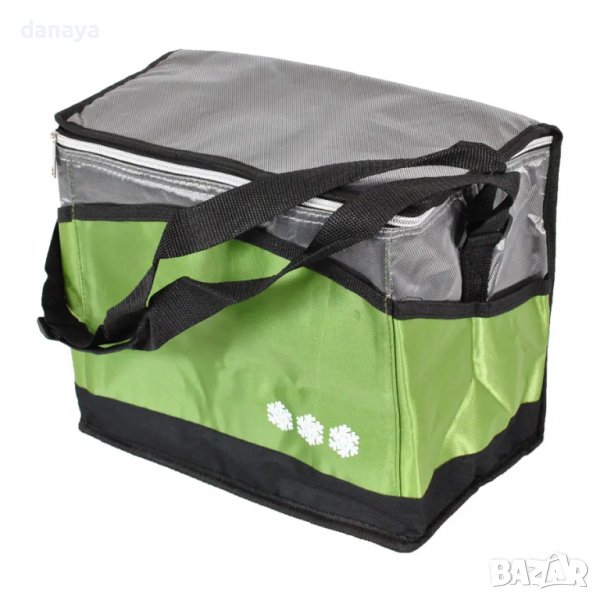 термо чанта с капацитет около 20 литра. Термо чанта, подходяща за плаж, пикник, риболов, къмпинг. Запазва температурата на поставените храни и напитки за няколко часа, благодарение на изолиращото фолио от вътрешната страна. Лека, удобна за пренасяне и употреба. Удобно затваряне и отваряне с цип, с черни дръжки за носене и допълнителна регулируема дръжка за носене през рамо. Външната част е изработена от промазка, а вътрешната е покрита с изолиращо фолио. Чантата е идеална за лятото!