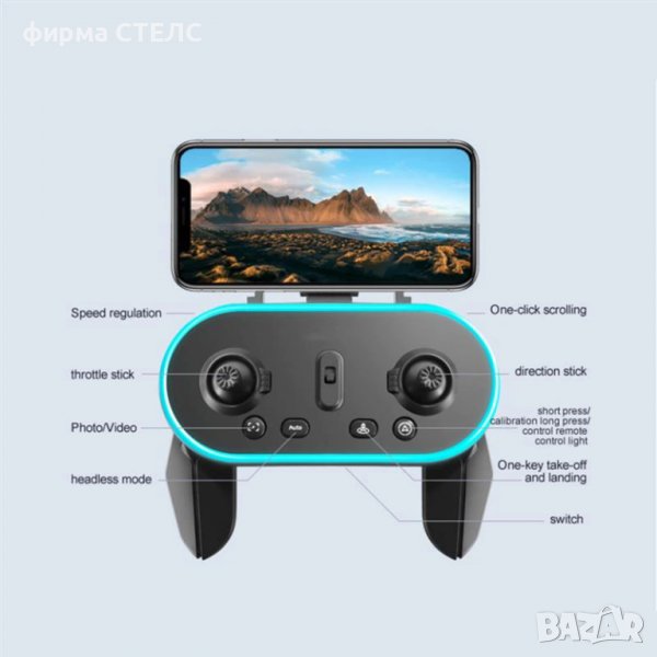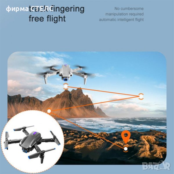 - Smart функция следване: дронът следва движещата се цел на дистанционното управление и изпълнява функция на следване.