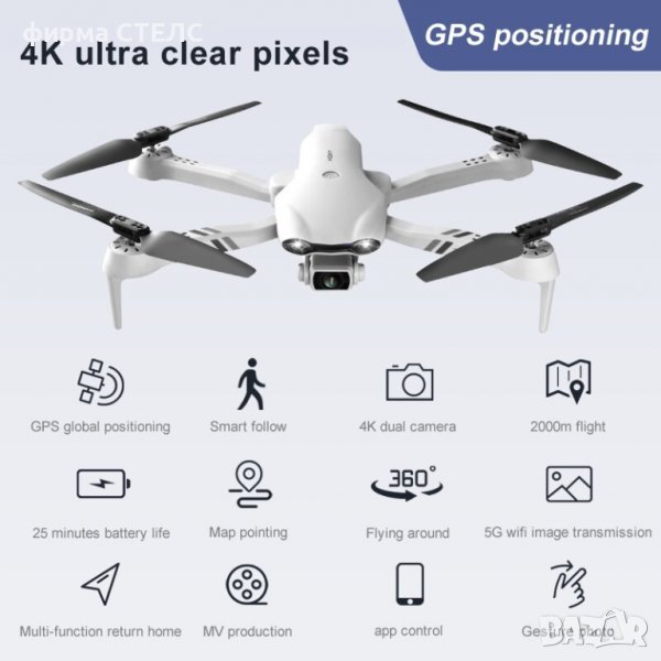 Дрон STELS F10, 5G GPS, Камера 4K,Сгъваеми рамена,Бутон Return To Home