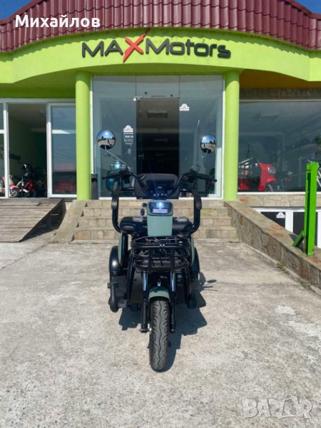 Уникална триместна триколка MaxMotors X1 – без аналог на пазара.Триколката е с дигитално табло, три нива на скоростта, стопове, мигачи и габарити,LED фар. Предна и задна ръчни спирачки. Крачна спирачка. Голям кош за багаж. Триколката е с вградена втора седалка за допълнителен пасажер, като самата седалка се движи във височина, което създава удобство за нисък или висок човек + подарък трета малка седалка.