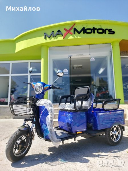 Електрическа триколка MaXmotors CARGO – LUX. Моделът е изключително атрактивен и подходящ за разходка на един или двама пътници. Задната седалка с едно движение се повдига и задната част се превръща в място за товар. Страничната част на задното отделение е със врата, което допълнително допринася за удобното пренасяне на товари. Последен модел на такъв тип триколки – нищо общо с предлаганите подобни на пазара. Изключително функционални, както за града, така и за по-малките населени места.