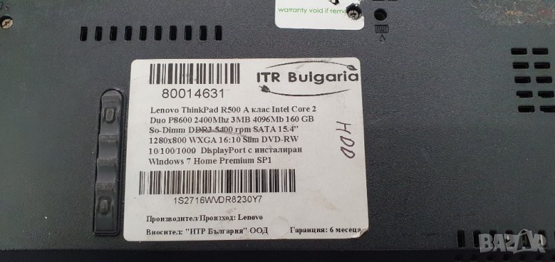 Продвам лаптоп на части Lenovo ThinkPad R500 ,Core 2 Duo P8600 , 4GB ram,15,4" → Обява 40180412