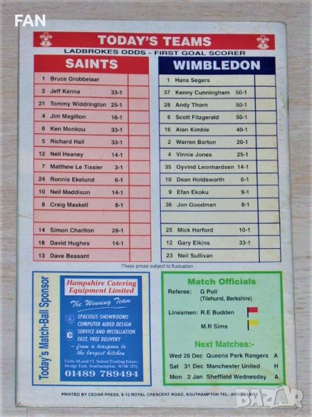 5) Саутхямптън - Уимбълдън - Висша лига - 26 декември 1994 г.