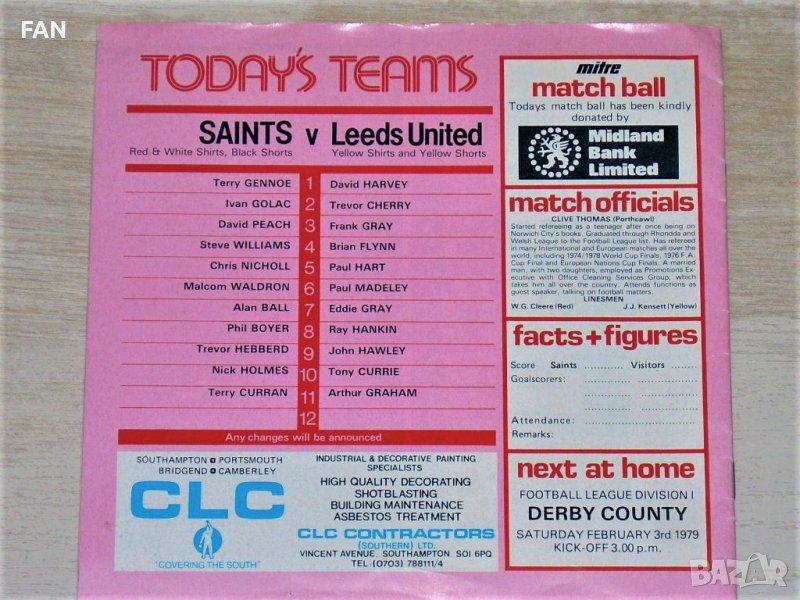 1) Саутхямптън - Лийдс Юнайтед - Купа на лигата (полуфинал) - 30 януари 1979 г.