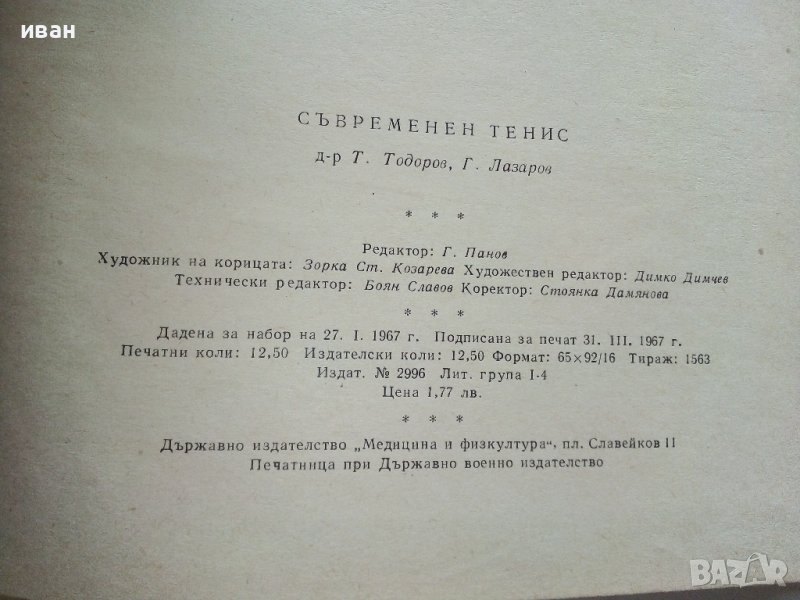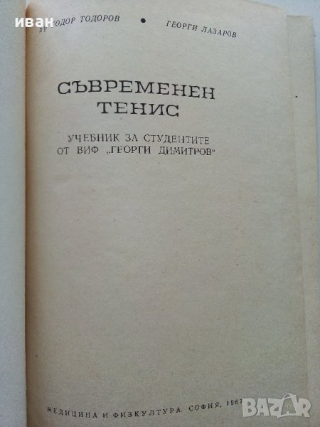 Съвременен Тенис - Т.Тодоров,Г.Лазаров - 1967г.  → Обява 40184618