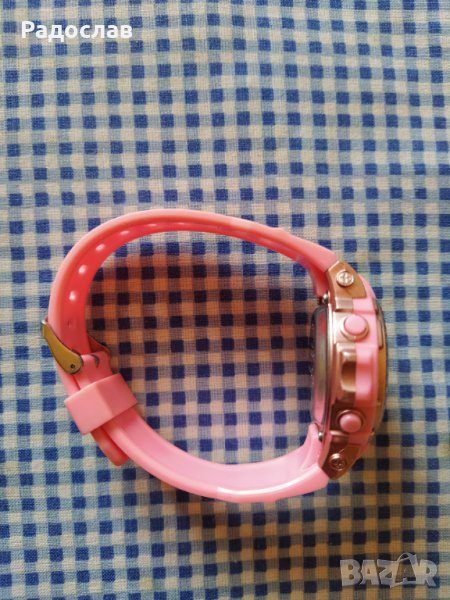 Водоустойчив спортен часовник с множество функции : дата , ден , хронометър , аларма , подсветка .
