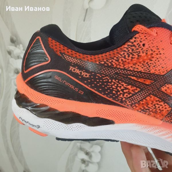 ASICS за оползотворяване на отпадъците и намаляване на въглеродните емисии.Подобрената GEL™ технология в предната част на крака допълнително намалява натоварването на краката, докато технологията FLYTEFOAM™ Propel в междинната подметка осигурява по-енергично бягане. TRUSSTIC™ технологията, съобразена със специфичните потребности на двата пола, осигурява стабилност, намалява теглото и спомага за удължаване живота на маратонката.Компонентите в GEL-NIMBUS™ 23 TOKYO осигуряват повече мекота, като запазват интегритета на отделните части. Нашата 23-та версия на модела следва линията за усъвършенстване и иновации, стремейки са да предложи отлична поддръжка и комфорт на бегачите на дълги разстояния.Тегло: 310 г (мъже) / 255 г (жени)Дроп: 10 мм (мъже), 13 мм (жени)GEL™ технология за омекотяванеДишаща горна частTRUSSTIC™ технология за повече стабилностFLYTEFOAM™ Propel технология в междинната подметкаFLYTEFOAM™ технологияORTHOLITE™ X-55 стелка за по-голям комфортСветлоотразителни елементи3D SPACE CONSTRUCTION™ за по-голяма компресия в опорната фазаОлекотен AHAR™ каучук в части от външната подметка, с висока устойчивост на абразия