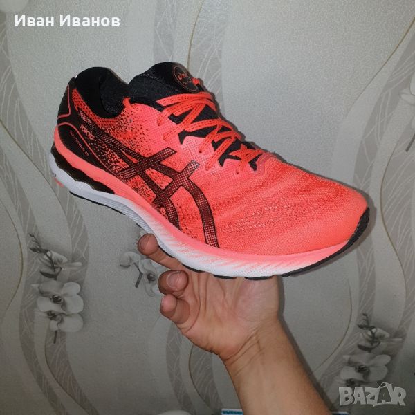 Нови , само пробвани Красиви , модерни Прекрасен цвят Актуален модел който доскоро по магазините беше 360 лева Дължина на стелката 30 см Маратонки GEL-NIMBUS™ 23 TOKYO предлагат изключителен комфорт и намаляват натоварването при бягане на дълги разстояния. Повишената стабилност осигурява по-балансиранa бегова крачка и по-плавни преходи.Мрежестата горна част с инженерна конструкция ще ви осигури удобство и проветривост, така необходими при бягането на дълги разстояния. Еластичните панели в средната част обгръщат ходилото, като едновременно го държат в позиция и позволяват гъвкавост при движенията. Освен това, горната част е изработена от рециклирани материали - това е част от глобалната мисия на