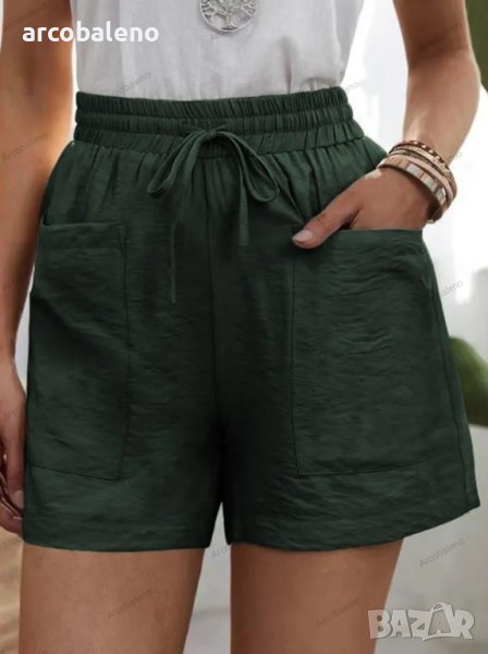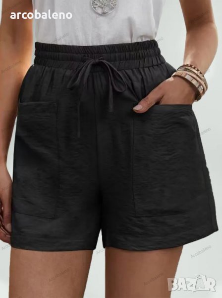 Дамски едноцветни къси панталони с шнур и широки крачоли, 5цвята
