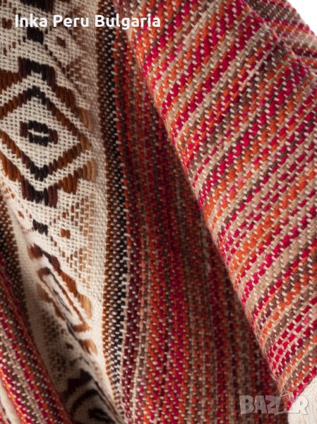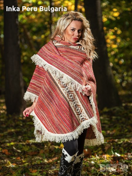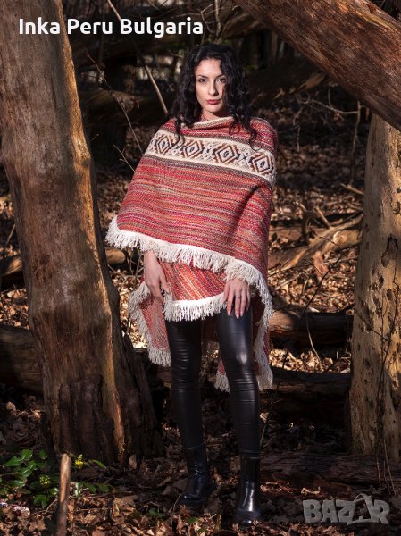 Автентичнo еквадорско унисекс отворено пончо, 100% вълна, оранжево-червено → Обява 40189753