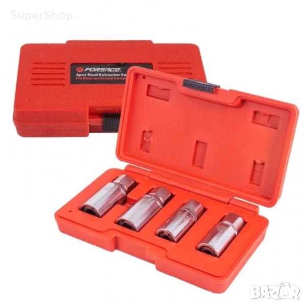 Професионален комплект шпилковадачи 6,8,10,12 мм FORSAGE в удобен пластмасов куфар за пренасяне – вложки за вадене на шпилки.
