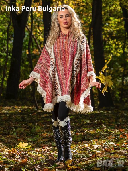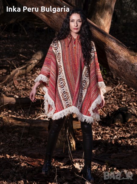 Автентичнo еквадорско унисекс пончо, 100% вълна, оранжево-червено → Обява 40189932