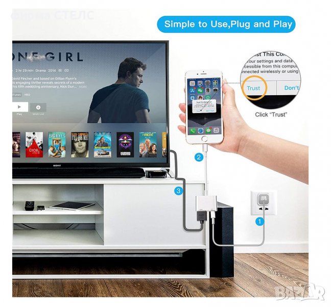 Преходник STELS, Кабел от Lightning към HDMI Digital, AV Adapter за iPhone, iPad, iPod