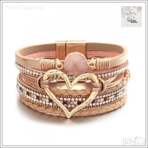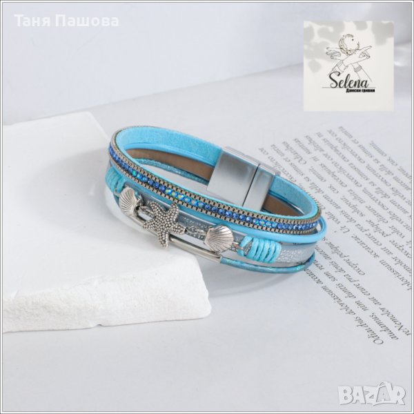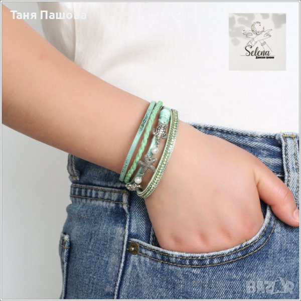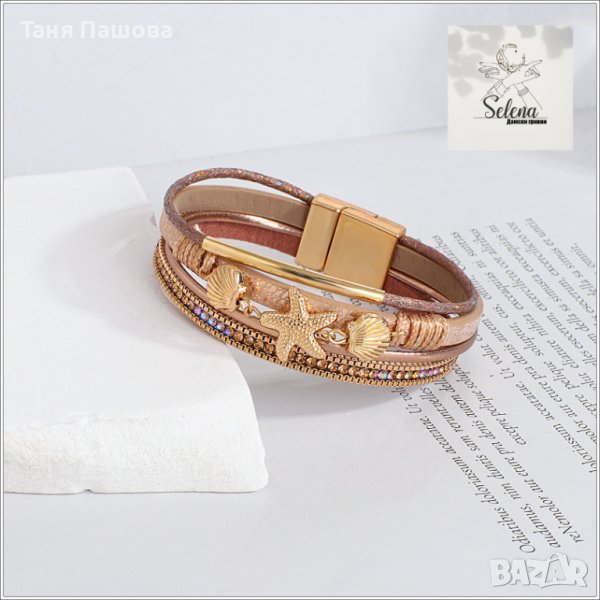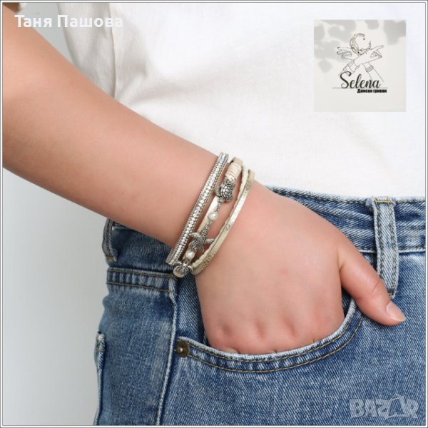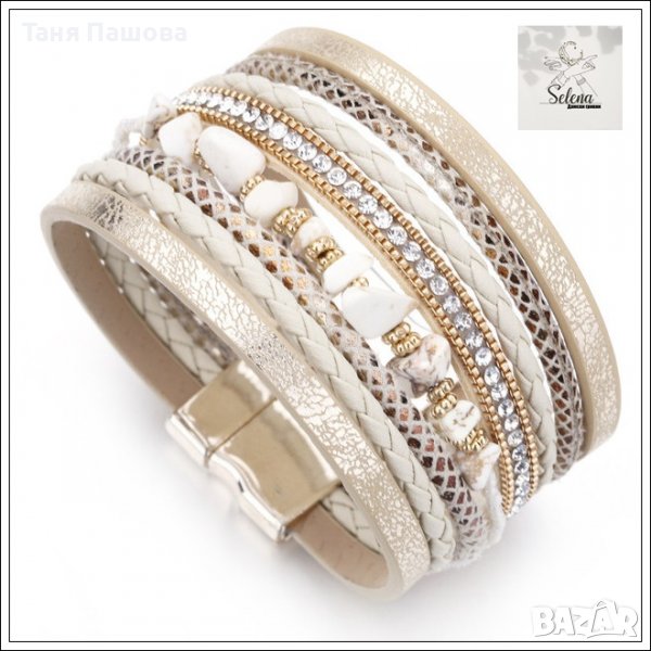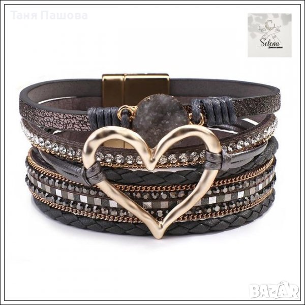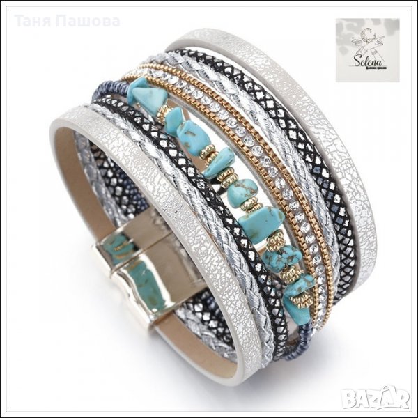 кожена многослойна гривна с метални елементи и метална закопчалка