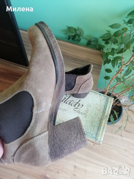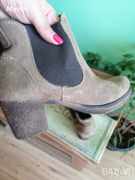 Страхотни боти бежов цвят, естествен велур, стабилна противохлъзгаща подметка и ток. Не са подплатени, идеални за пролет и есен. Обувани веднъж, на мен са ми големи, понеже нося 36.