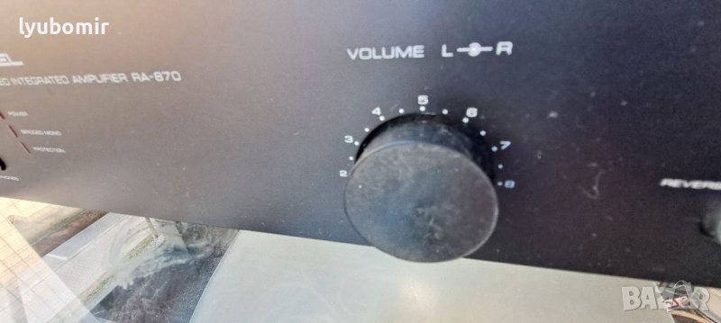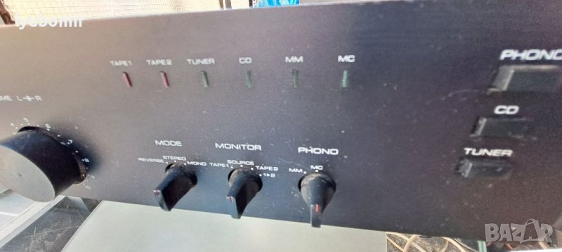 С по четири транзистора на канал, с автономно захранване на всеки, без вградени корекции.Много качествен звук за този ценови клас.Копчето за усилване не е оригинално.Леки забележки по ръба на лицевия панел.