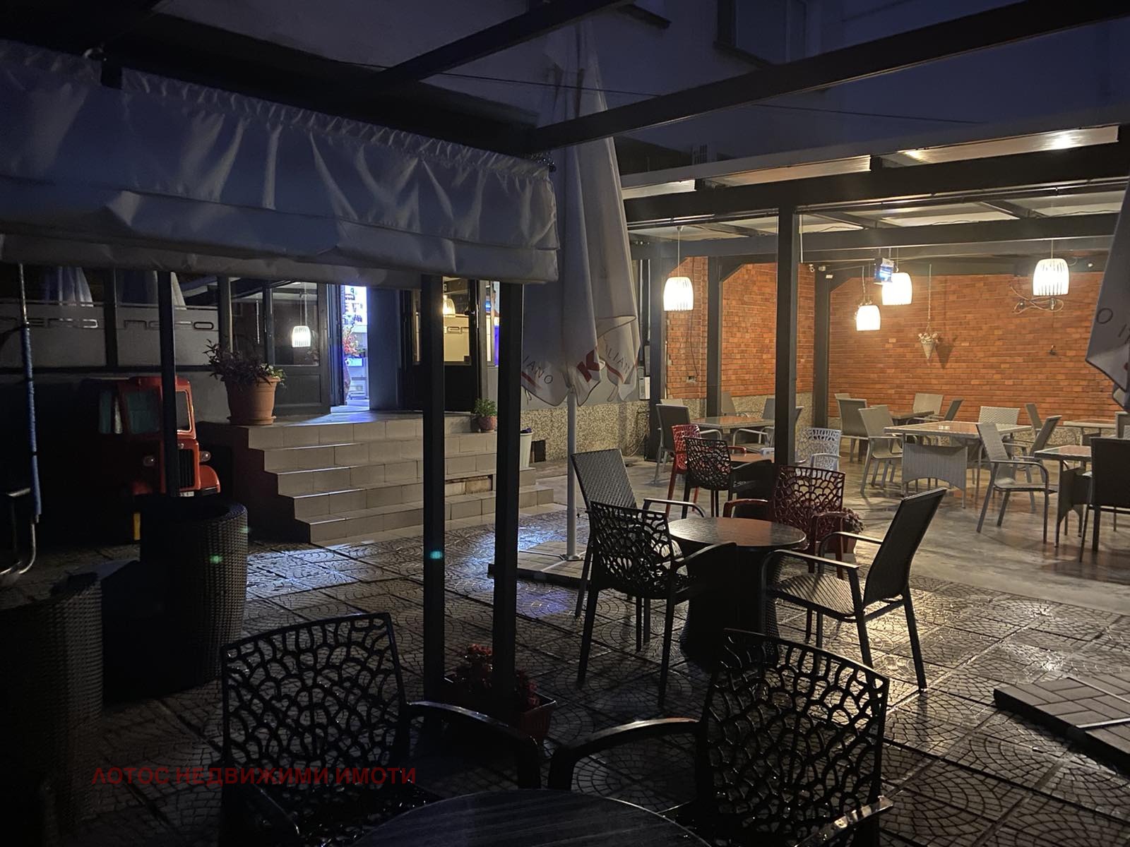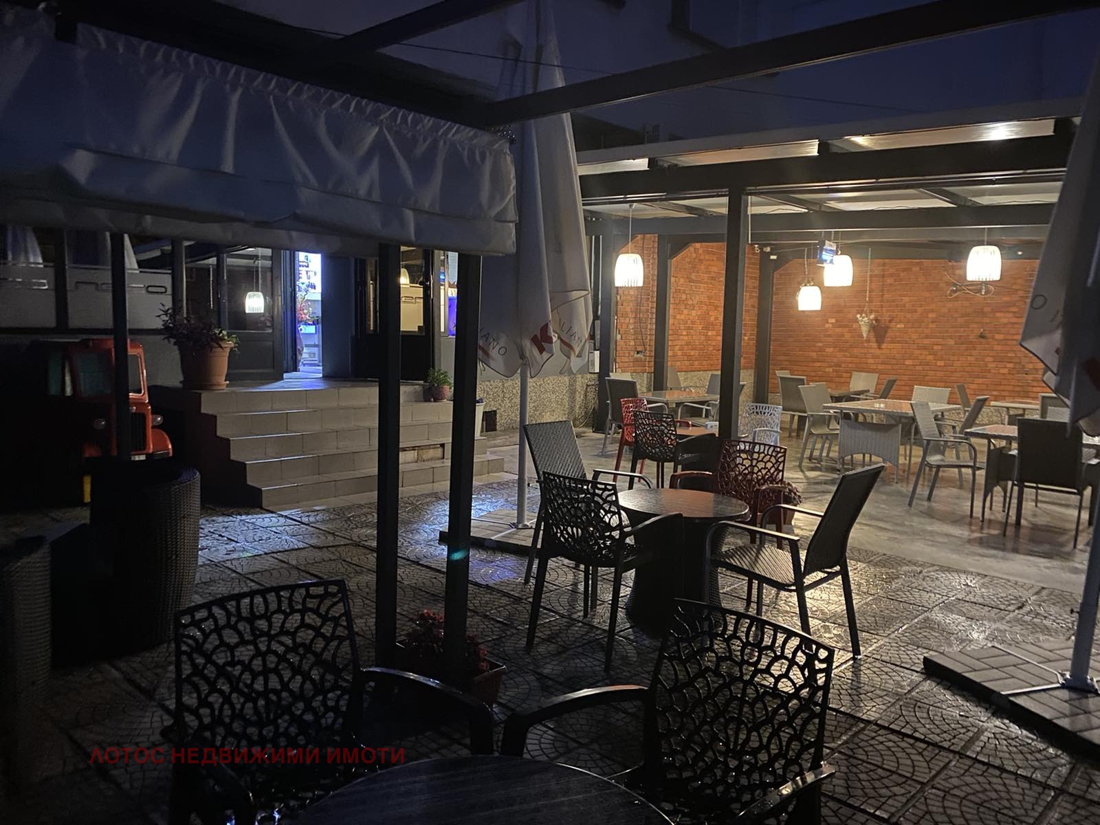 Агенция за недвижими имоти ЛОТОС продава търговско помещение на изключително комуникативно място в идеалния център на гр.Лясковец. Помещението е със статут на КАФЕ- АПЕРИТИВ и е с площ- вътрешно помещение от 99 кв.м-работещо с оборудване за кафене и кухня- предлага се с цялостно обзавеждане- мека мебел за 50 места. Възможност за ползване на външни места- лятна градина с масивен навес, обзавеждане за 70 места и оборудвана детска площадка.Кухнята е оборудвана с ел. уреди предлагаща салати,скара, аламинути и десерти. Имота е на възлово място в самия център на града, до всички възможни административни сгради и учреждения-улица с голям човекопоток.ИЗКЛЮЧИТЕЛНО ДОБРА ОФЕРТА - ВЪЗМОЖНОСТ ЗА ЗАКУПУВАНЕ НА РАБОТЕЩ БИЗНЕС. ПОРАДИ МЕСТОПОЛОЖЕНИЕТО НА МОЖЕ ДА БЪДЕ ИЗПОЛЗВАН И ЗА ДРУГ БИЗНЕС- МАГАЗИН ,ОФИС И ДР.