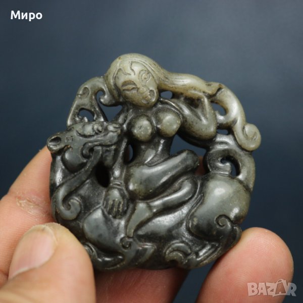 ЕСТЕСТВЕН НЕФРИТ ЖАДЕИТ ЕРОТИКА ТИГЪР ФИГУРКА ТАЛИСМАН ГРАВИРАН → Обява 40194495