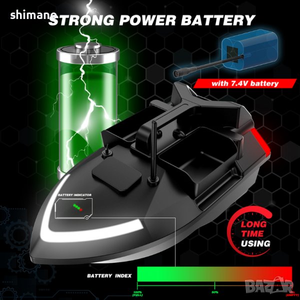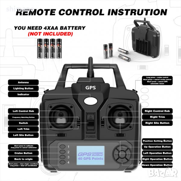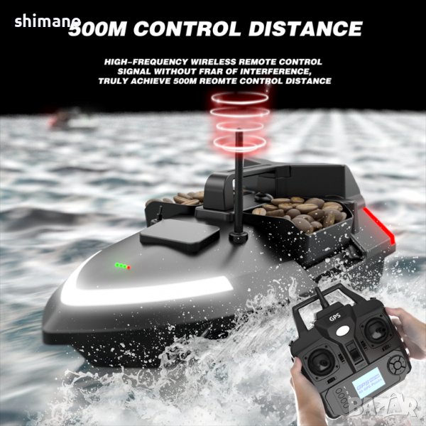 Автоматично връщане при недостиг на батерия: Когато дистанционното управление е с изтощена батерия, батерията на лодката е недостатъчна, или сигналът е загубен, лодката автоматично ще се върне към началната точка.