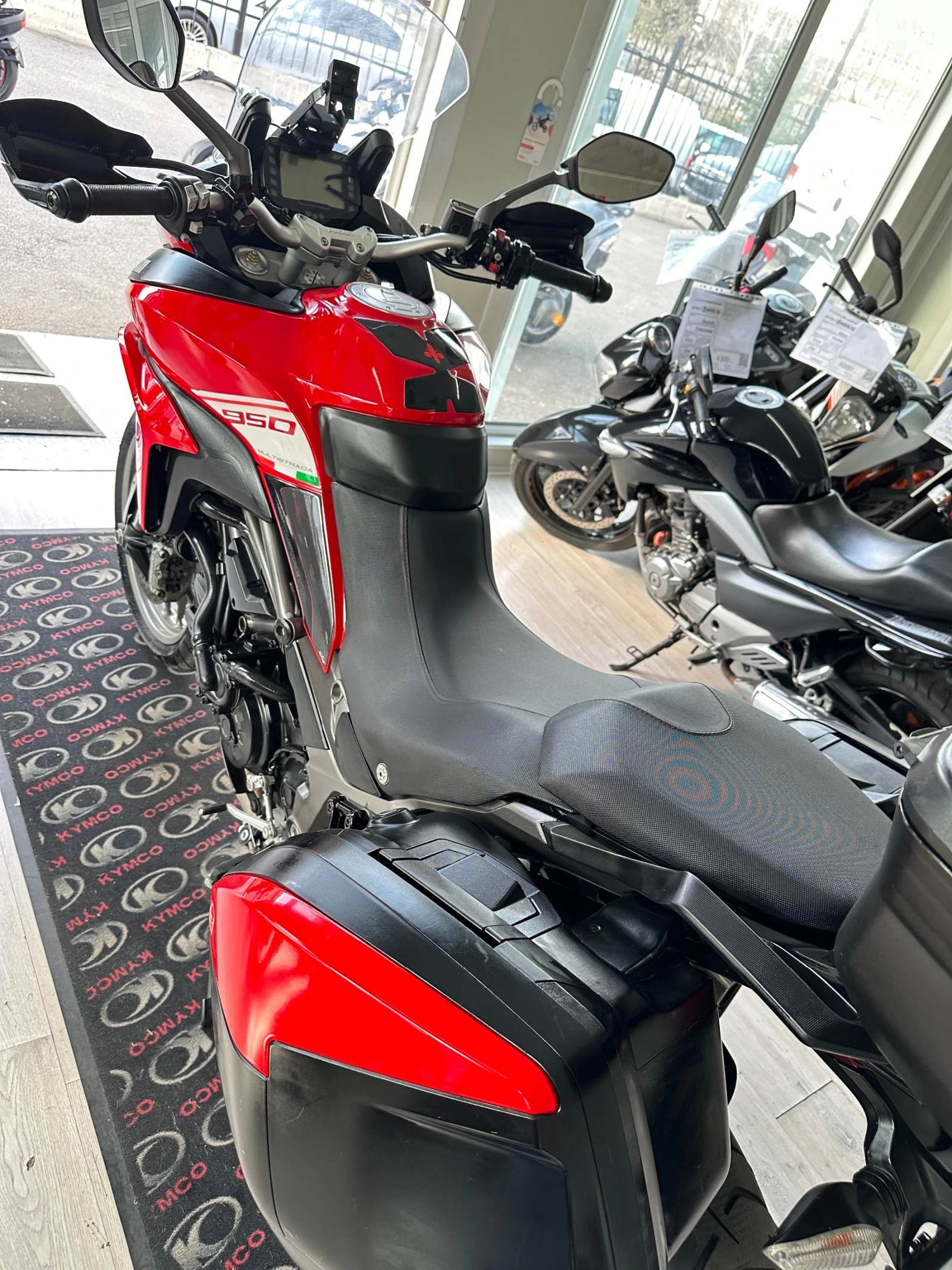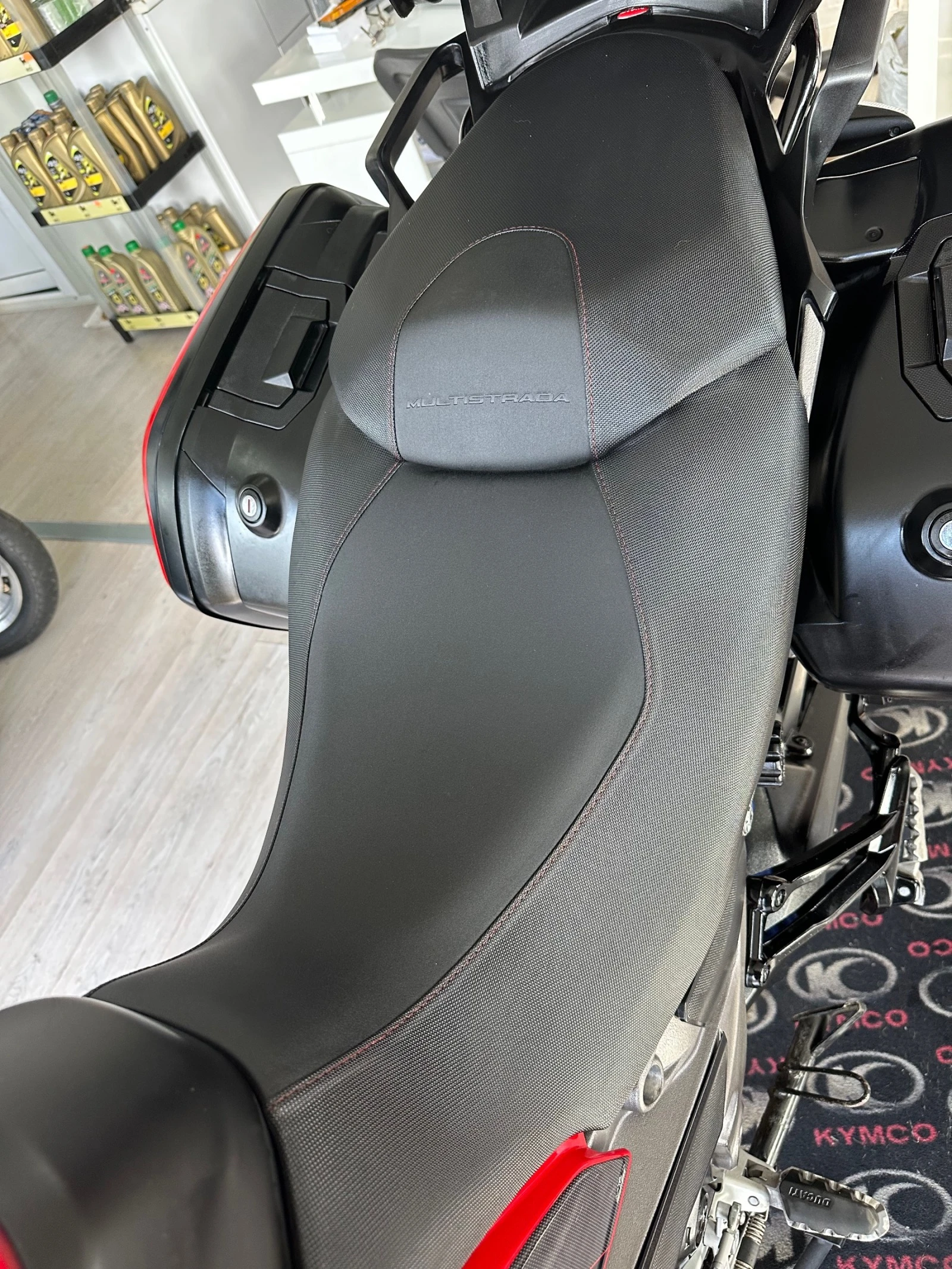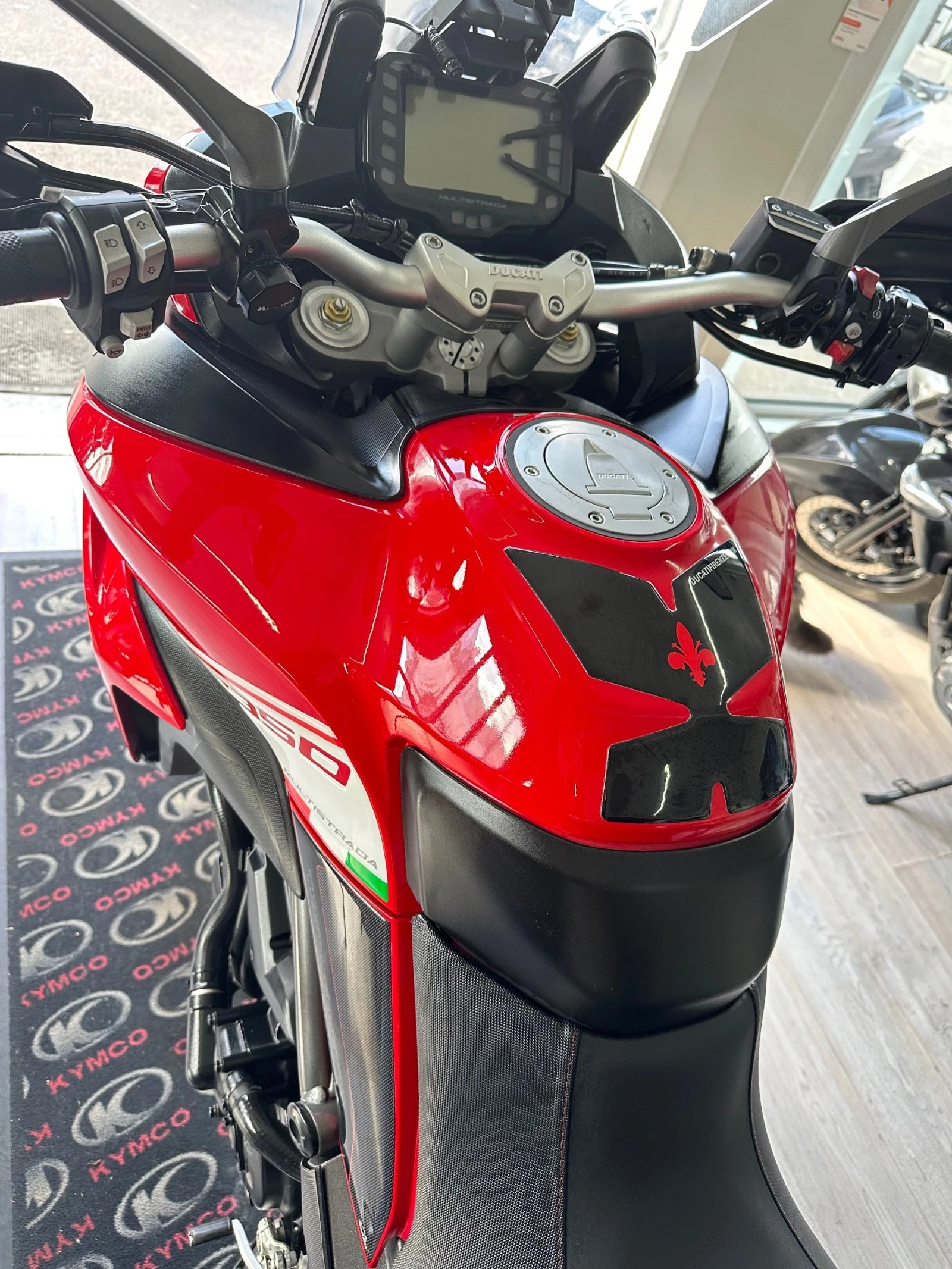 Мотора е в топ състояние и напълно автентичен вид, оборудван с 3 топ каси за багаж Ducati, халогени фарове, LED светлини, ABS, TCS, електронно управление на дроселовата клапа, 4 режима на управление (Touring, Sport, Urban, Enduro) със специални настройки на двигателя (Power Mode, ABS, DTC), 3 типа настройки на мощността на двигателя в зависимост от избрания режим на управление, Bosch Cornering ABS - анти-блокираща система при завиване с ъгъл сензор, система за потегляне от място (моторът не тръгва назад), активно окачване, настройващо се според настилката, спирачното усилие и ускорението, възможност за превключване на предавките нагоре и надолу без съединител, система против повдигане на предната гума при ускорение, мултимедия. Нов внос с изрядни документи. Възможност за закупуване на лизинг.