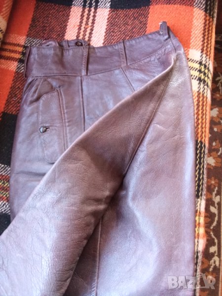 Много добре запазен мъжки панталон от по-дебела,мека естествена кожа, предназначен за каране на мотор , пази отлично.Има и подплата, както се вижда на снимките.Посоченият размер е само защото трябва да посоча размер. Ще измеря това, което Ви интересува.Панталонът няма скъсано или други наранявания на кожата.Има два странични и един заден джоб с капаци.Дължина по страничния външен шев 98см,обиколка на кръста 85см.Цветът е кафяв.Предлагам панталона за 330лв.