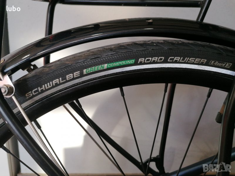 Колелото е в много добро състояние .27ск. Допълнително сложени калници, багажник калобранчета. Колелото е с дискови спирачки schwalbe гуми за шосе.