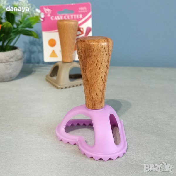 Пластмасов резец за равиоли с дървена дръжка. Ррзците се предлагат в два варианта – с форма на сърце и с форма на кръг. Създавайте домашно приготвени пълнени равиоли бързо и лесно с този удобен резец с дървена дръжка.