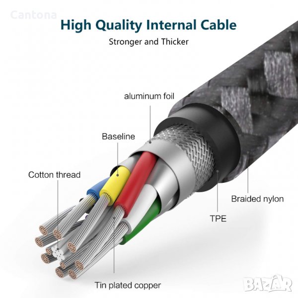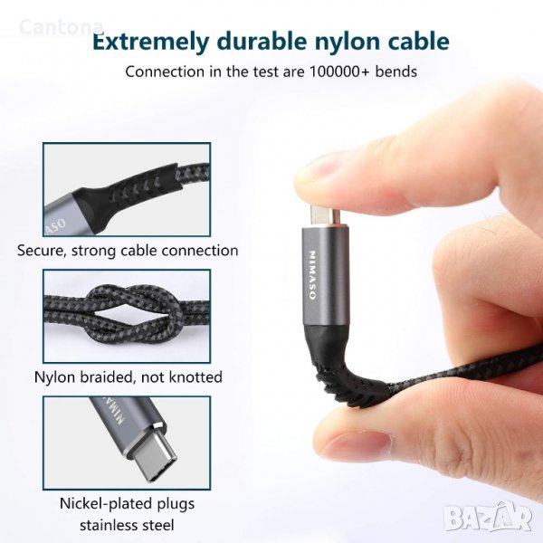USB C проводник първокласен найлонов плетен кабел, издръжлив и не се заплита.Превъзходна здравина с 10 000 пъти огъване.Никелирана тапа от неръждаема стомана, която има отлична устойчивост на корозия и не ръждясва..