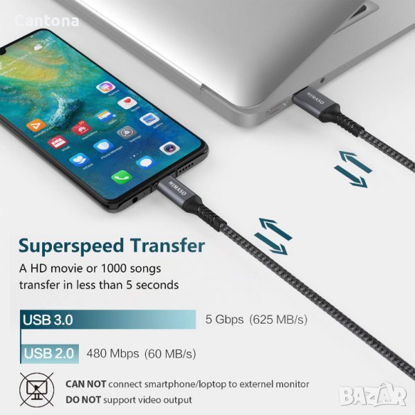 USB 3.0 кабел за зареждане предава данни със скорост до 5Gbps, което е 10 пъти по-бързо от USB 2.0 (480Mbps).Супер бърз за прехвърляне на файлове, видеоклипове, снимки, HD филми от вашите USB-C телефони към Type-C лаптоп за секунди, без да чакате.USB C 3.0 отличен избор на ефективност за скорост на пренос на данни..