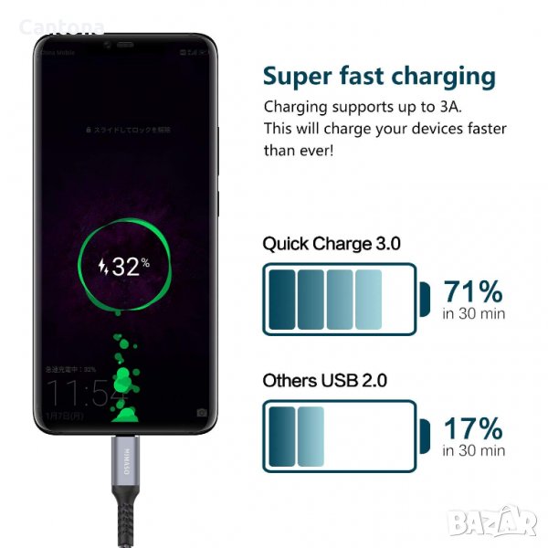 Този USB кабел тип C, съвместим с мобилни телефони и таблети с порт Type-C.