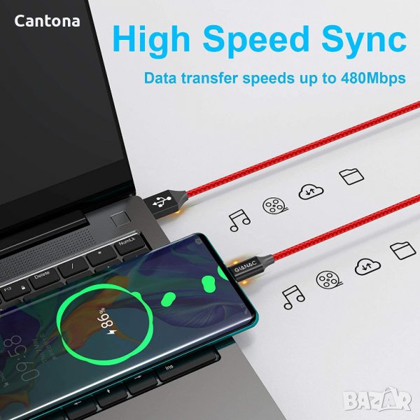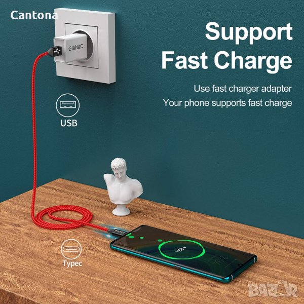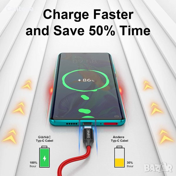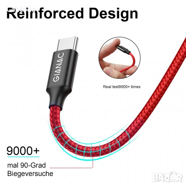 GIANAC USB C кабел, найлоновa oплетка, кабел за бързо зареждане