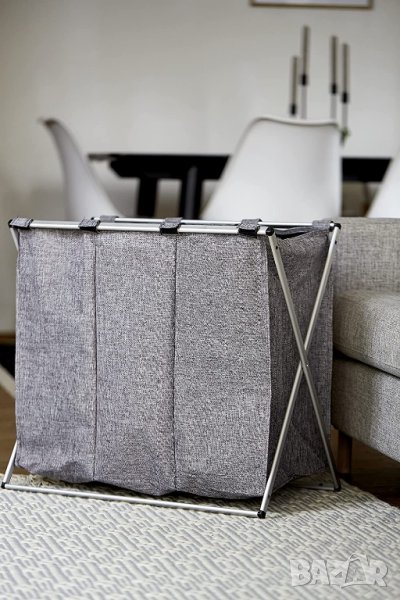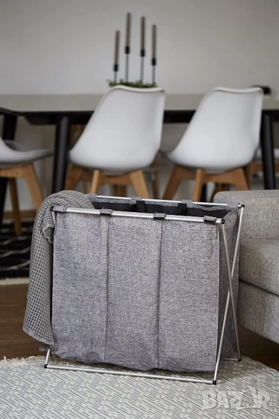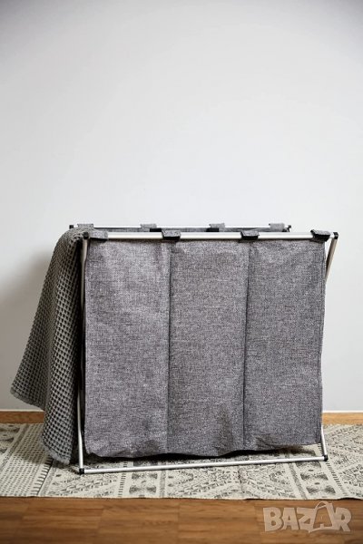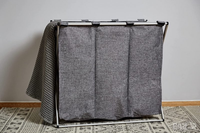 Раклата за пране с три отделения и капак е практичен помощник, който