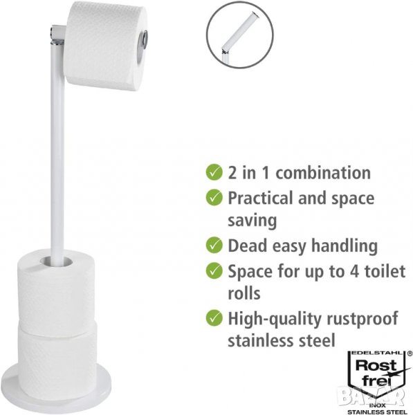 Стоящ държач за тоалетна хартия WENKO с вграден държач за резервна ролка за тоалетна хартия