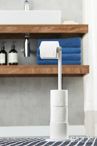 дизайн: Стоящата тоалетна хартия с вграден държач за допълнителни ролки