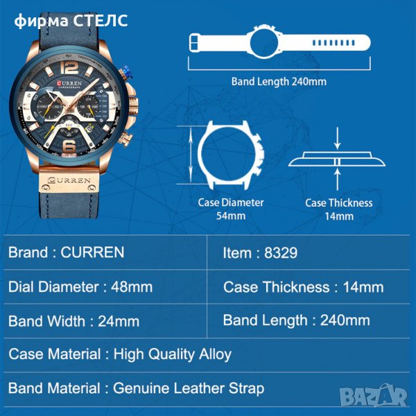 Мъжки часовник Curren, Хронограф, Естествена кожа