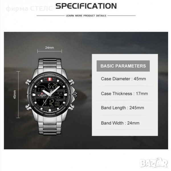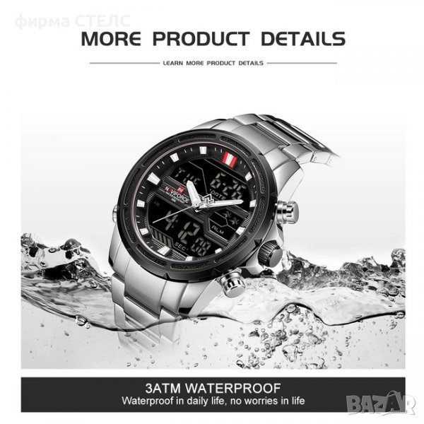 Корпус и циферблат от неръждаема стомана. Стъклото на циферблата е устойчиво на надраскване.