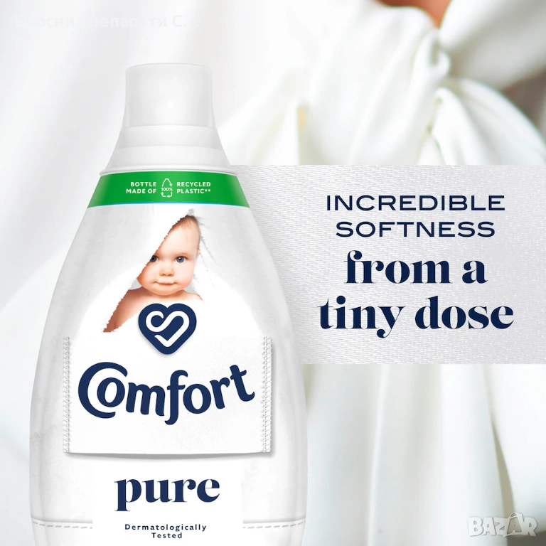 Comfort Ultra-Concentrated Fabric Conditioner Pure е специално създаден, за да осигури деликатна, но ефективна грижа за дрехите и кожата на цялото семейство – дори най-чувствителната.