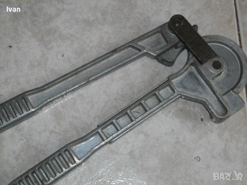 ОПИСАНИЕ на по-дългият тръбогиб, размер огъване 12 мм-14 мм. Цена 159 лв. Съвсем НОВ, неизползван и неупотребяван. Размер 12-14 мм. Немски. Старо масивно качество. Липсва марка.