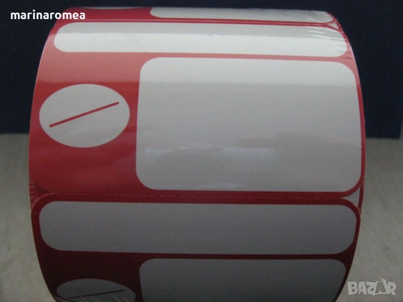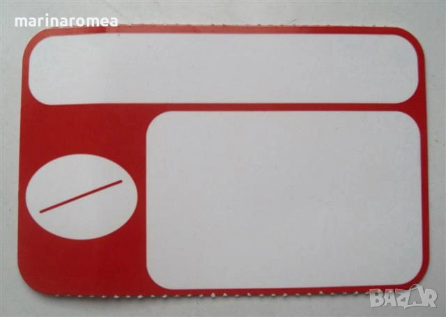- 400 броя картонени етикети. Цвят: червено/бели с размери 105 Х 68мм
