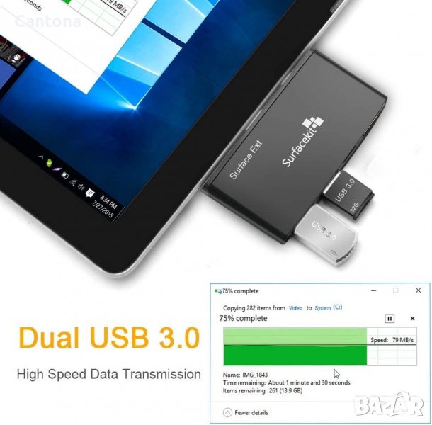 - Hub за Surface Pro 5/6: 2 x USB 3.0 + 1 x HDMI порт + Type C порт