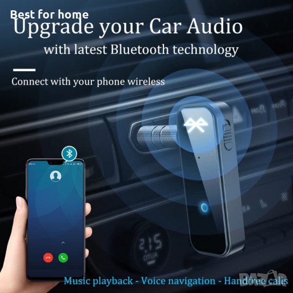 Просто поставете Bluetooth AUX адаптера в AUX 3,5 мм жак на стерео уредбата на колата си и след това правете, отговаряйте и отказвайте разговори със свободни ръце с един бутон, наслаждавайте се на музика в телефона си и слушайте гласове за навигация. Опростеният, тънък дизайн минимизира отпечатъка върху таблото на автомобила. Технологията Bluetooth 5.0 подобрява вашата безопасност, удоволствие и забавление по време на шофиране.