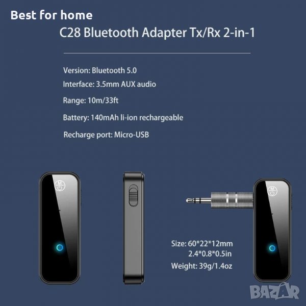 Аудио приемник предаватер C 28 Bluetooth 5.0 Wireless Transmitter/Receiver