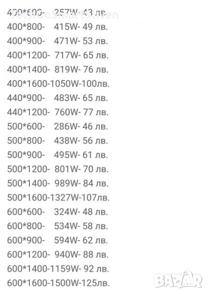 отоплителни мощности и цени, вижте приложената снимка или ни се обадете.
