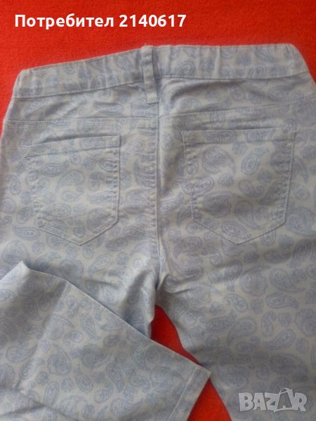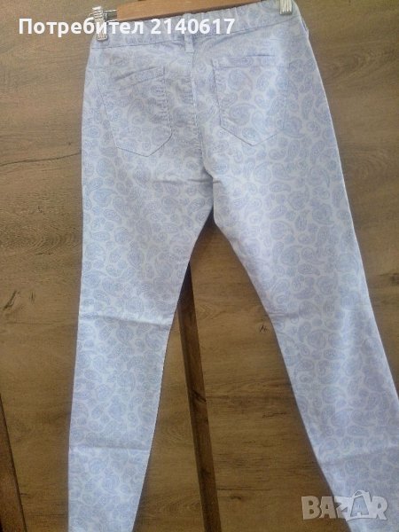 Флорален еластичен дънков клин в синята гама,колан-ластичен с гайки,ТАЛИЯ-от68 до 86см;ханш от 92 до108см;крачол-77см;дълбочина отпред-20см