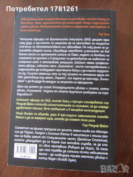 "Завладяващ роман за действително съществувал отряд от британци, поели задължението да елиминират банда хладнокръвни наемни убийци. Високооктанов съспенс и неумолимо преследване на всяка страница." - The Time