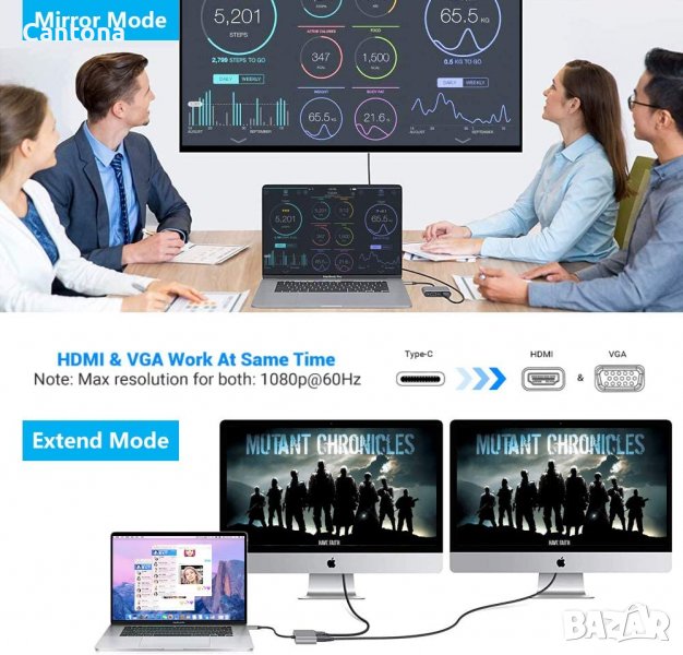- Направете огледален или разширен екрана си с USB C хъб hdmi/usb c към vga порт и директно предавайте поточно 4K UHD @ 30Hz или пълно HD 1080p видео към HDTV, монитор или проектор.