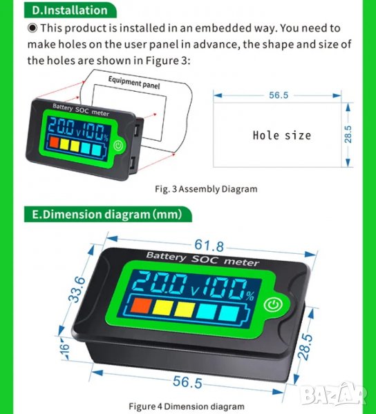 Забележка: Този продукт е приложим само за измерване на 12V, 24V, 36V, 48V, 60V, 72V литиево-желязо-фосфатна батерия или полимерна литиева батерия